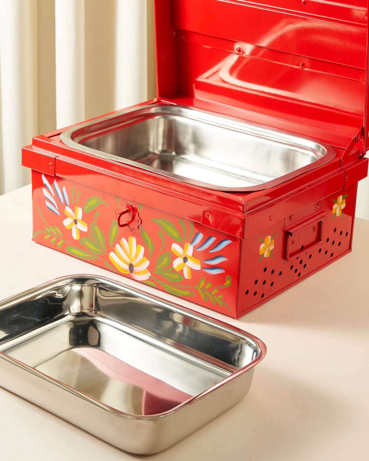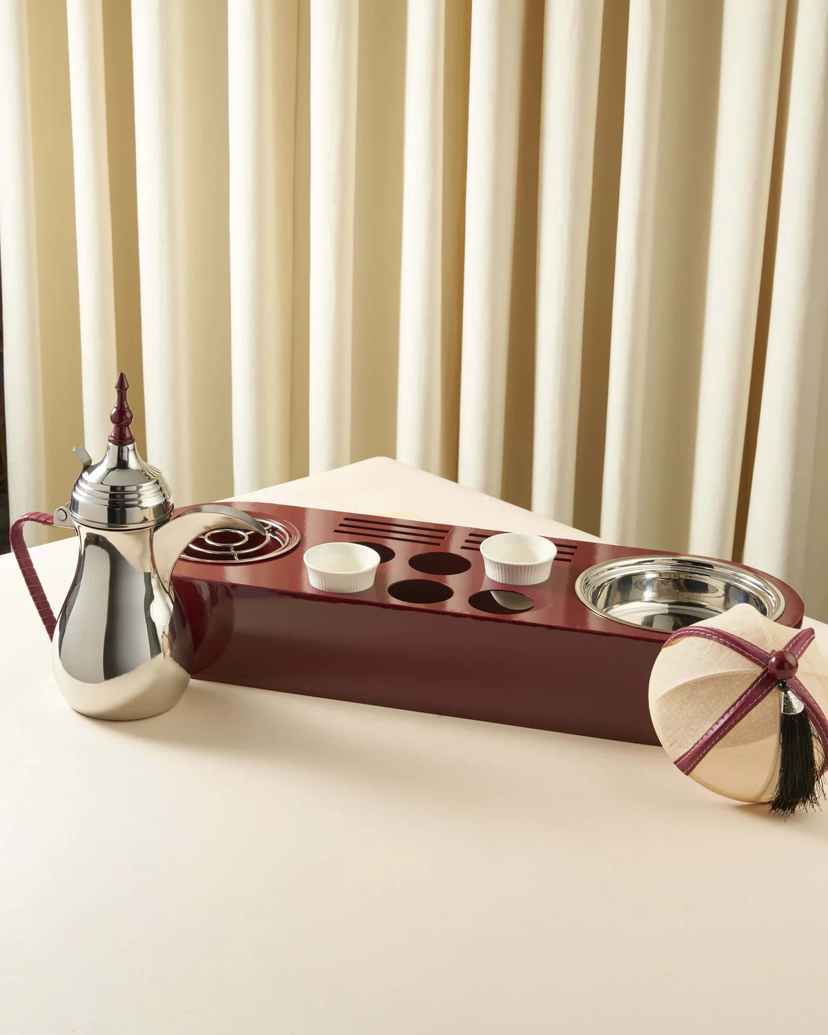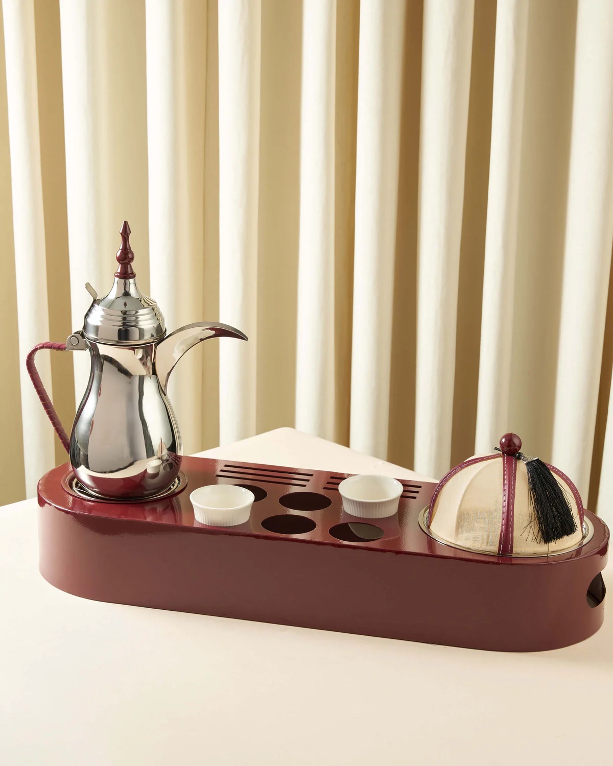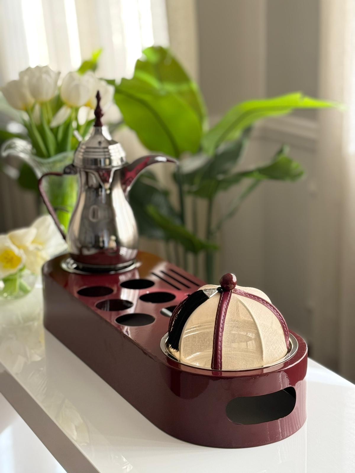 ماعون تقديم مزاين بغطاء خام عنابي ( 3 أحجام )