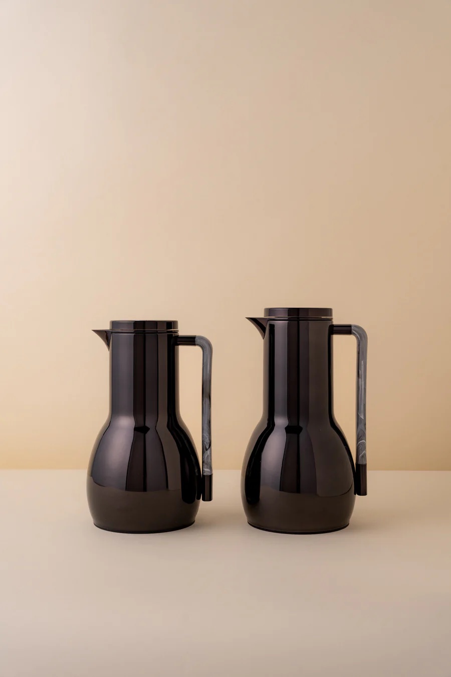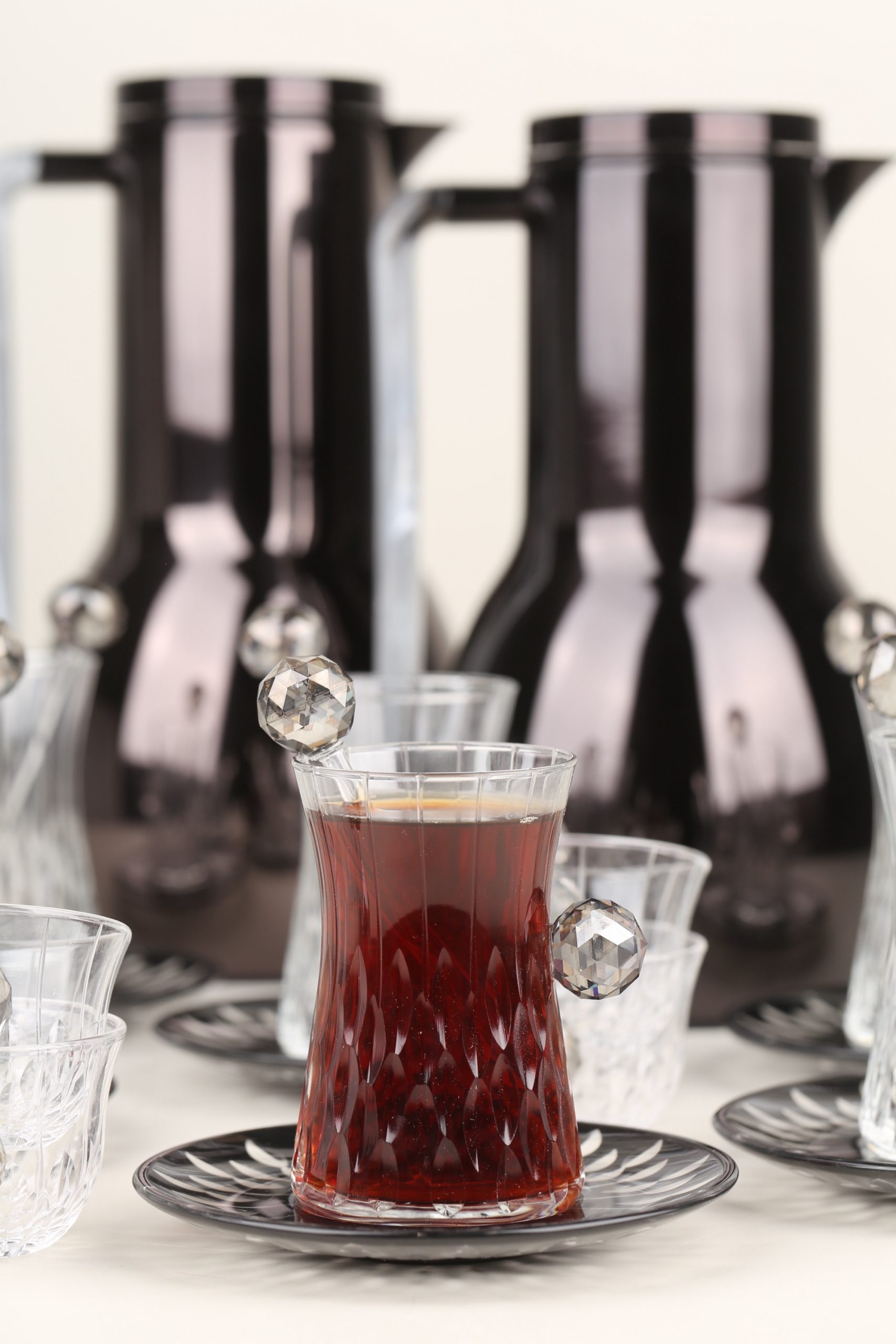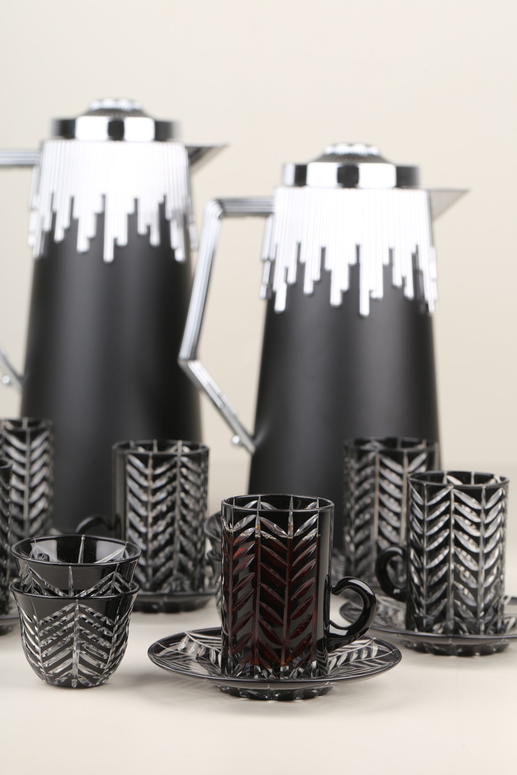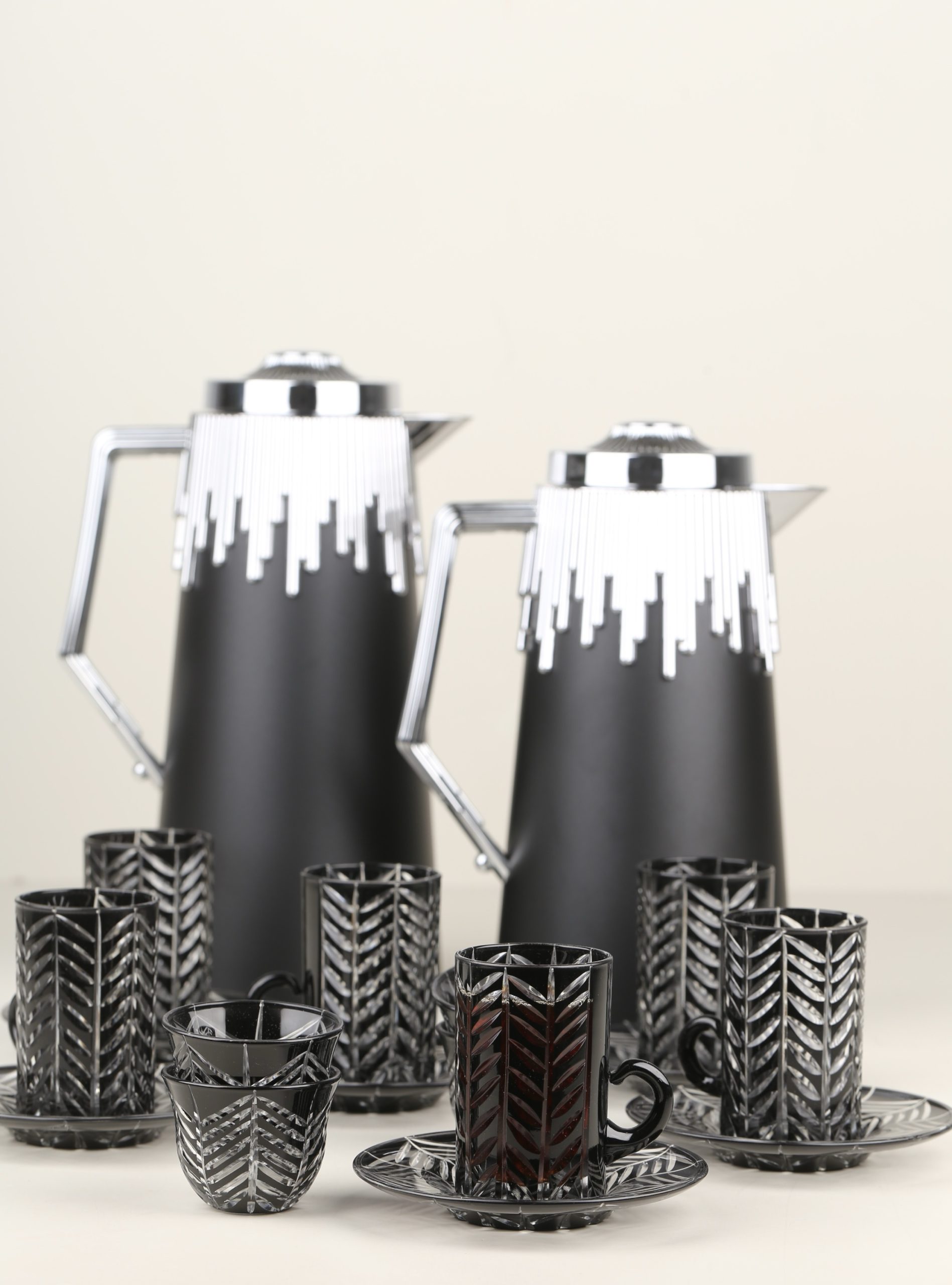 طقم مطارتين قهوة و شاي باللون السيلفر مع صينية أكريليك •