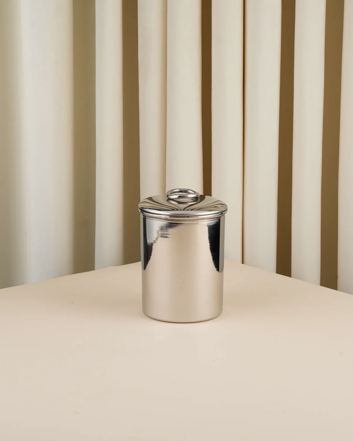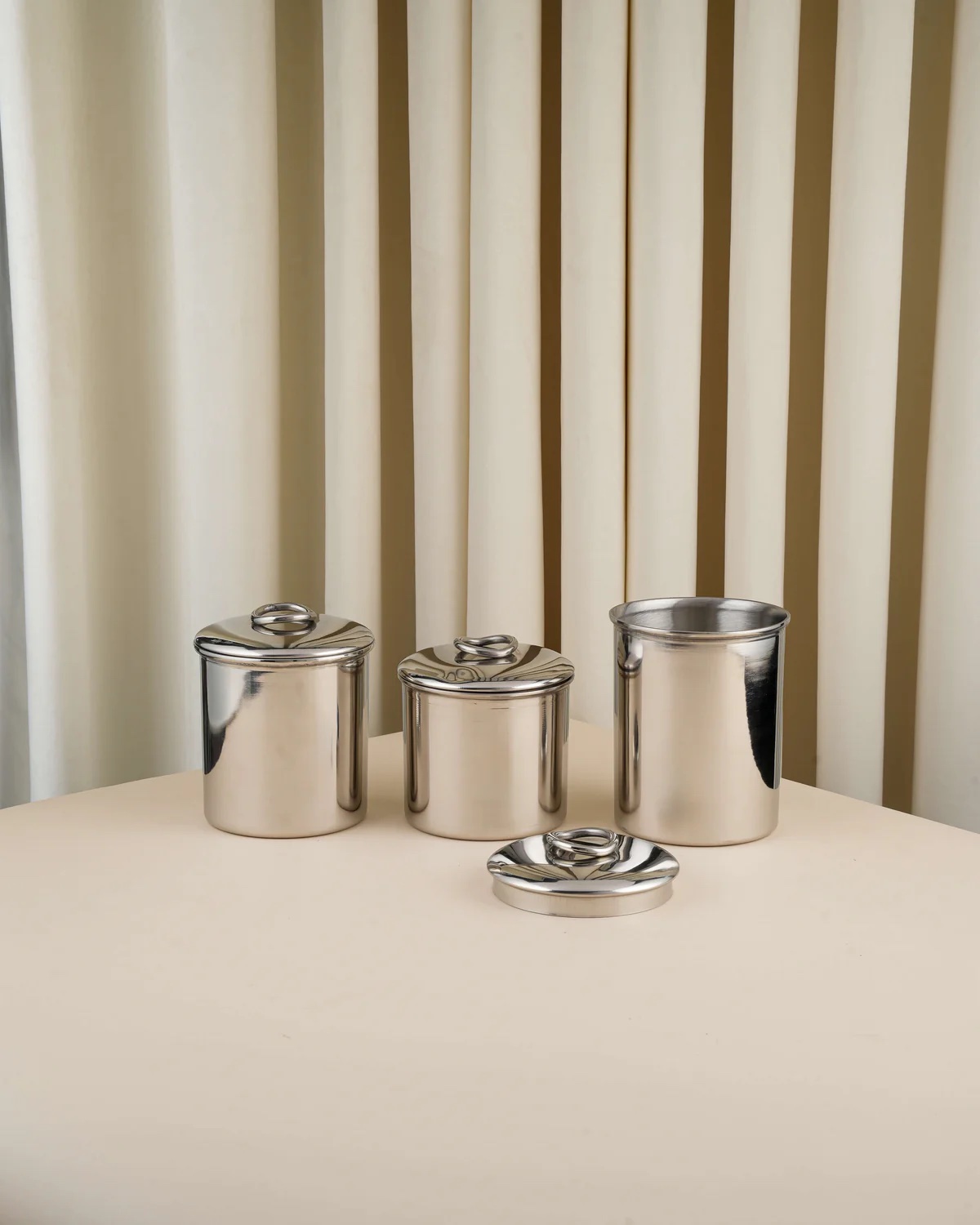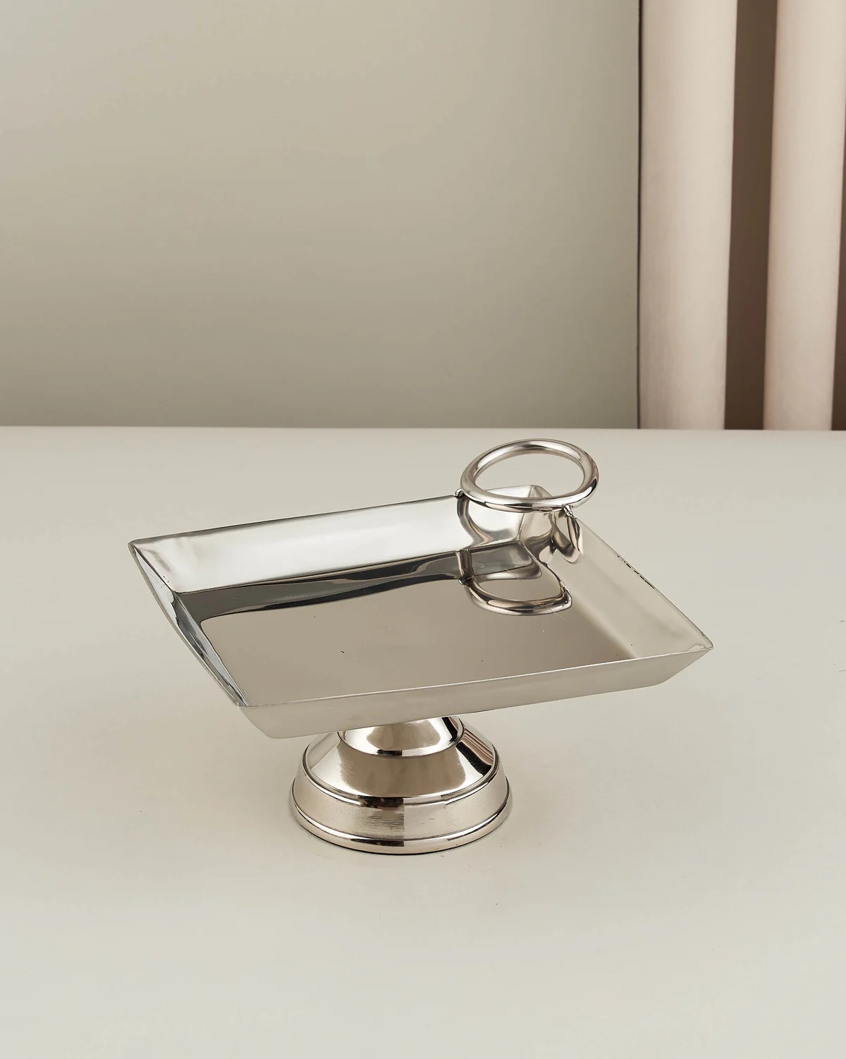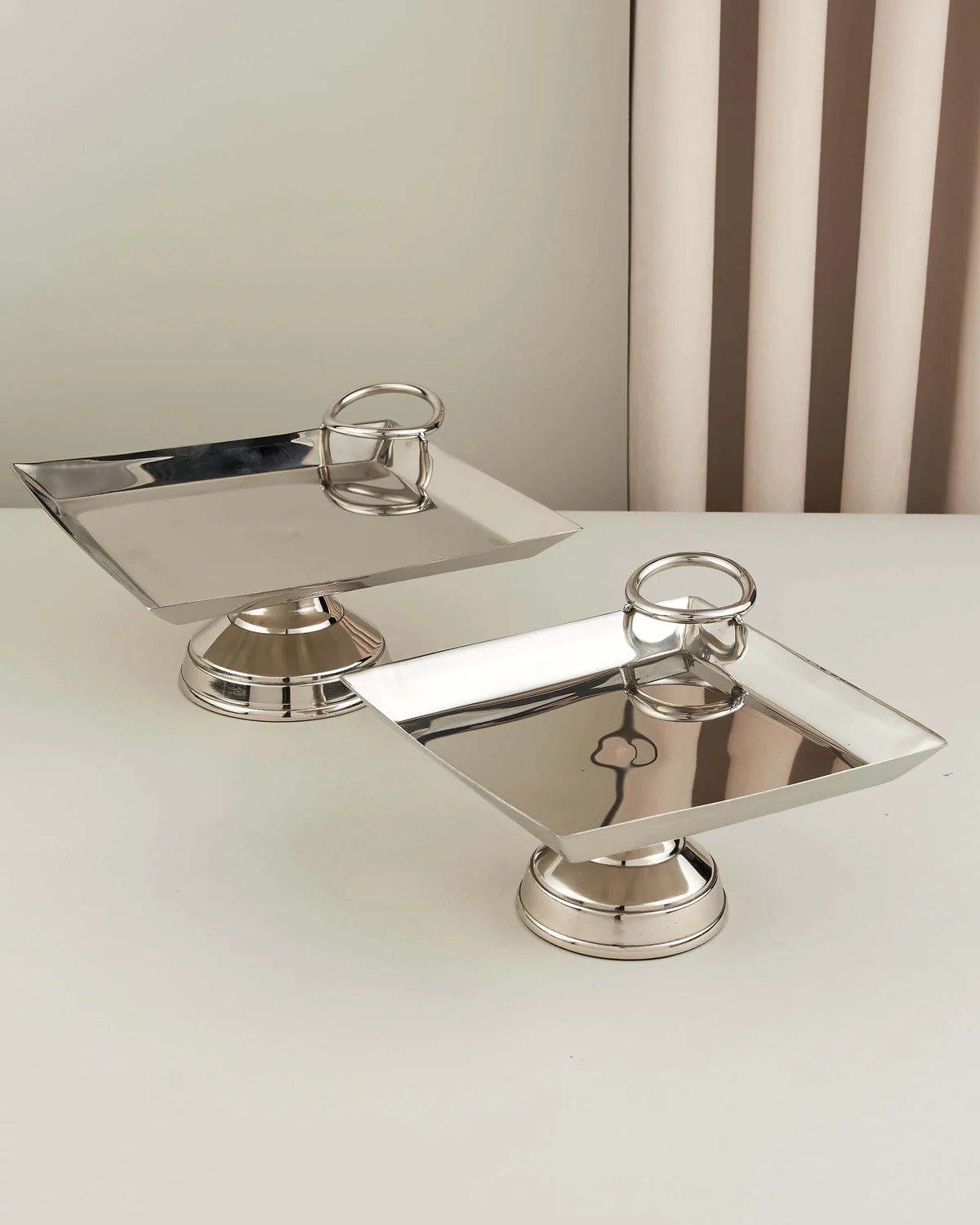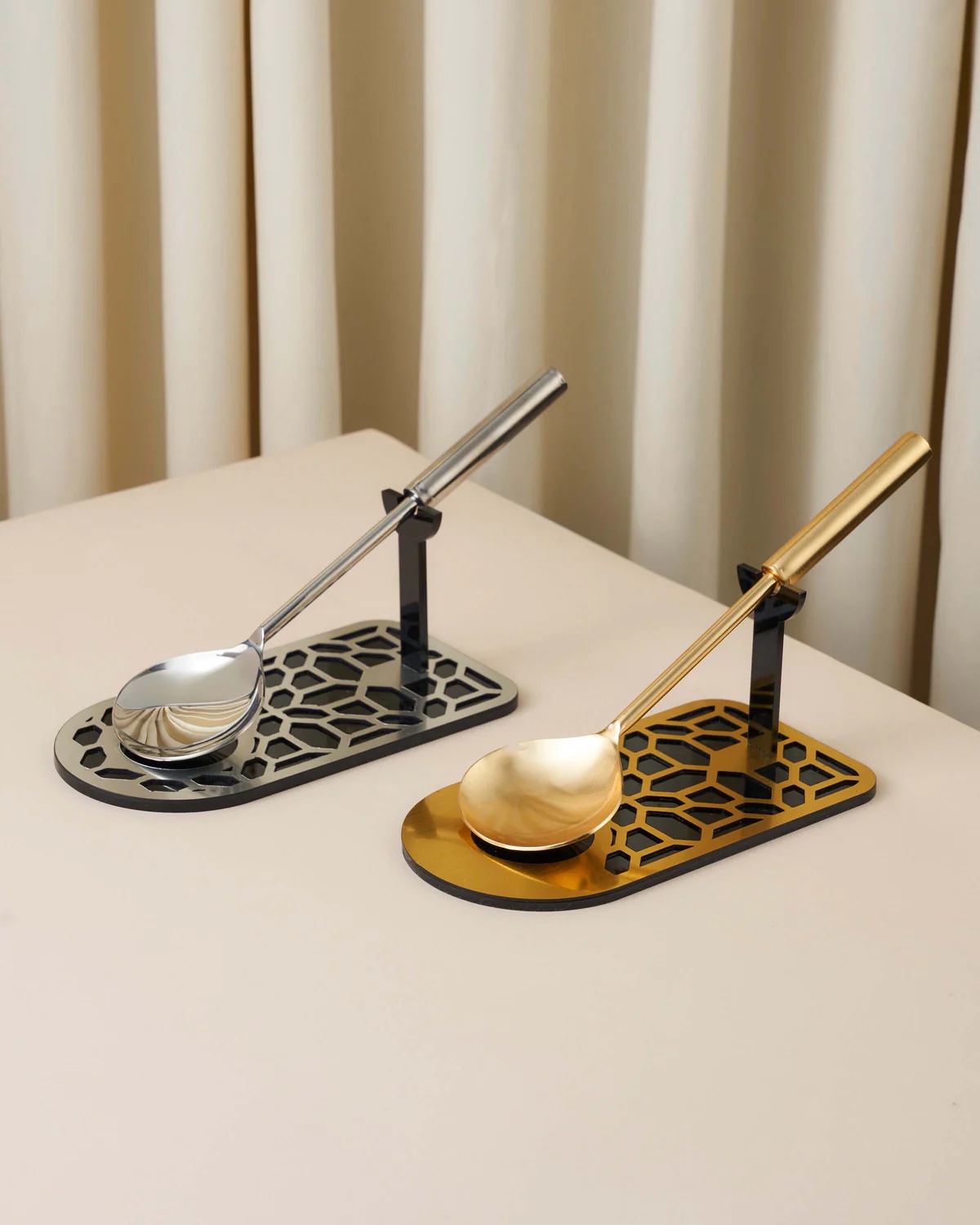 يأتي بغطاء خام مزوّد بلمسة جلدية فاخرة مع 6 صحون ستيل أنيقة وقاعدة معدنية متينة تجمع بين الفخامة والعملية.