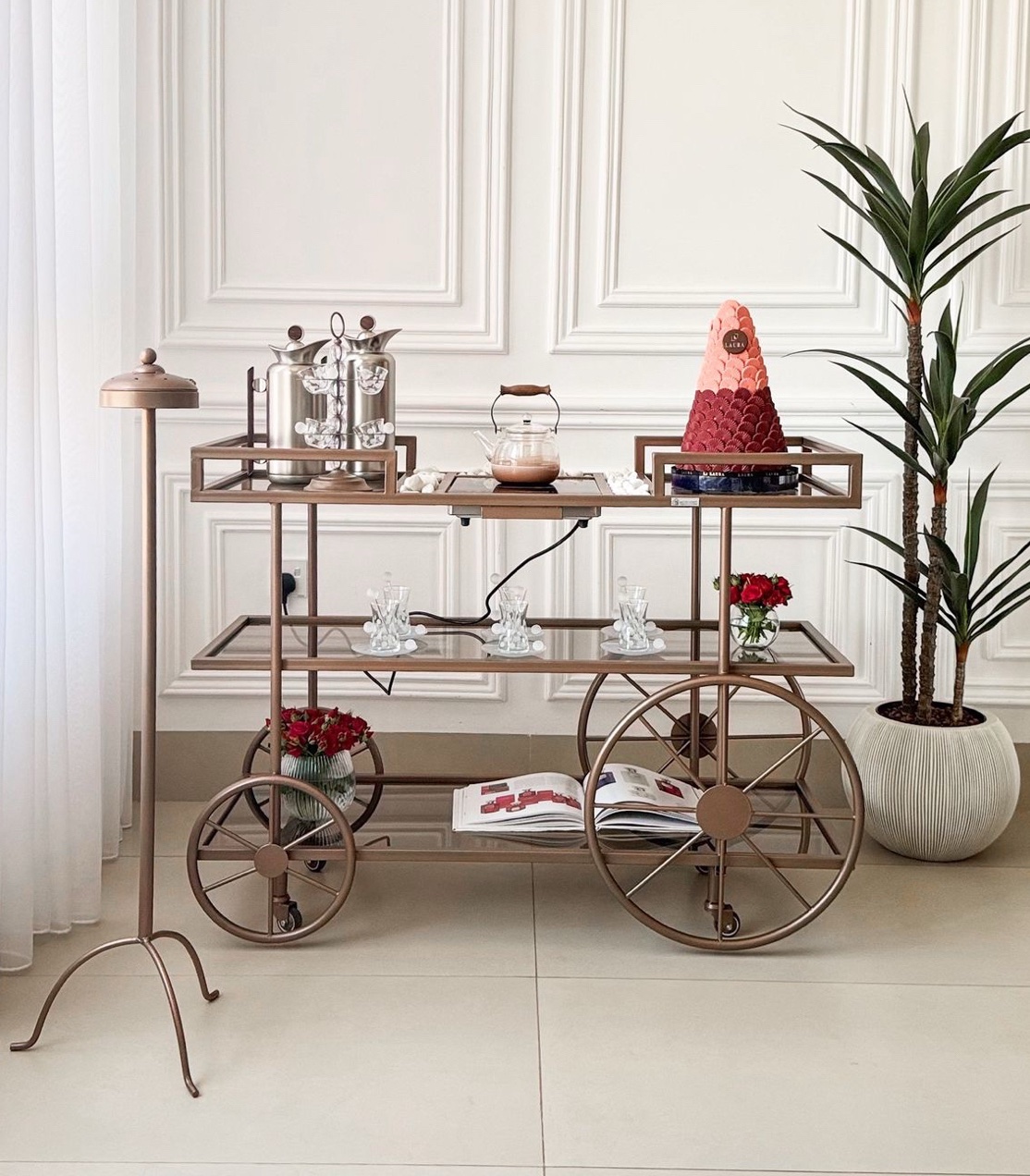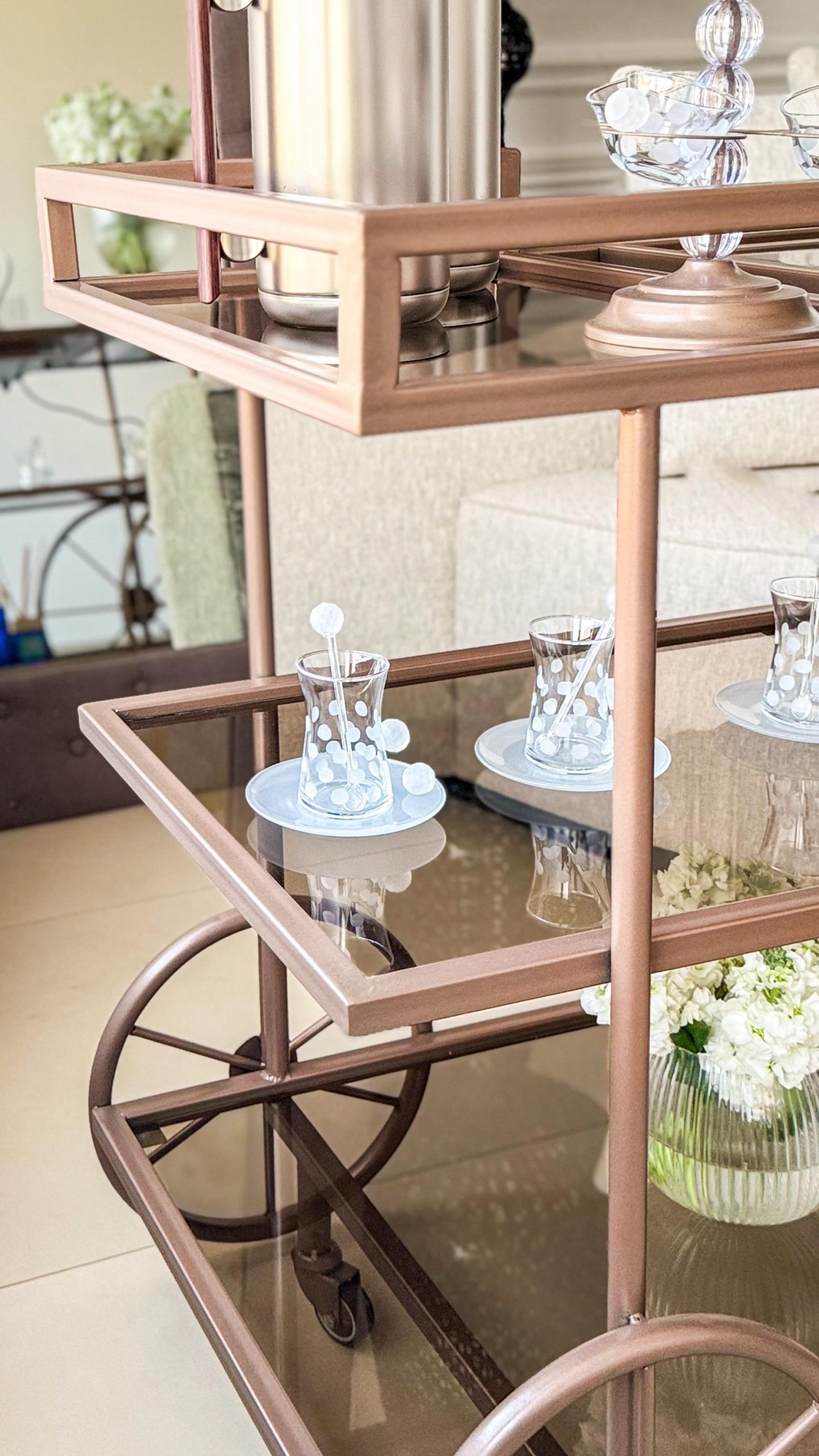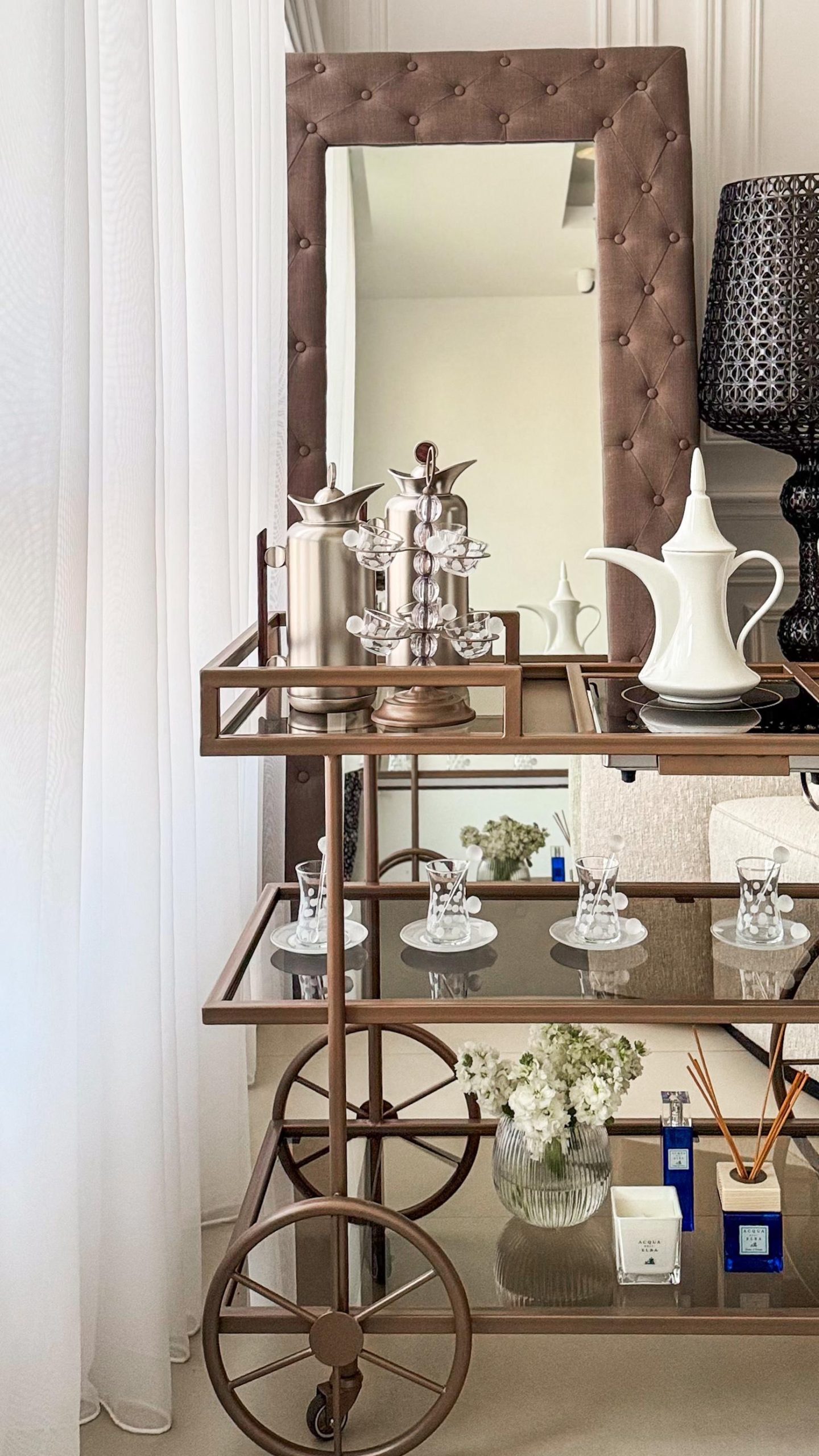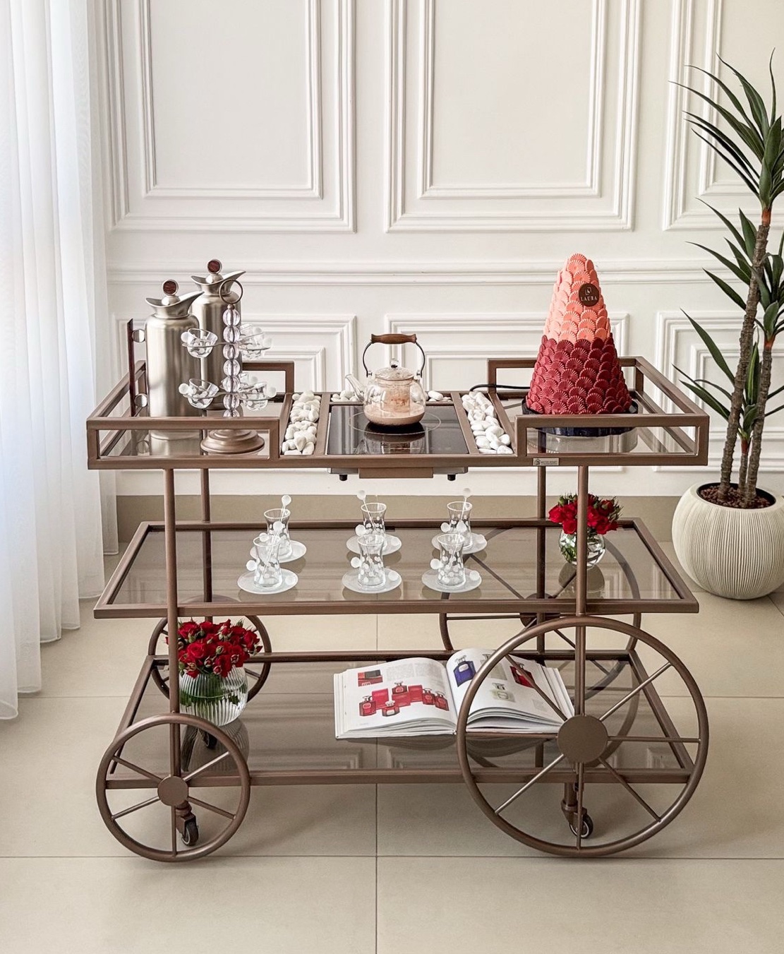 ترولي مستر هومز الجديدة لضيافتكم الراقية ، مع دوة الكهربا و أحجار بيضاء للزينة باللون المُميز رمادي مطفي ✨