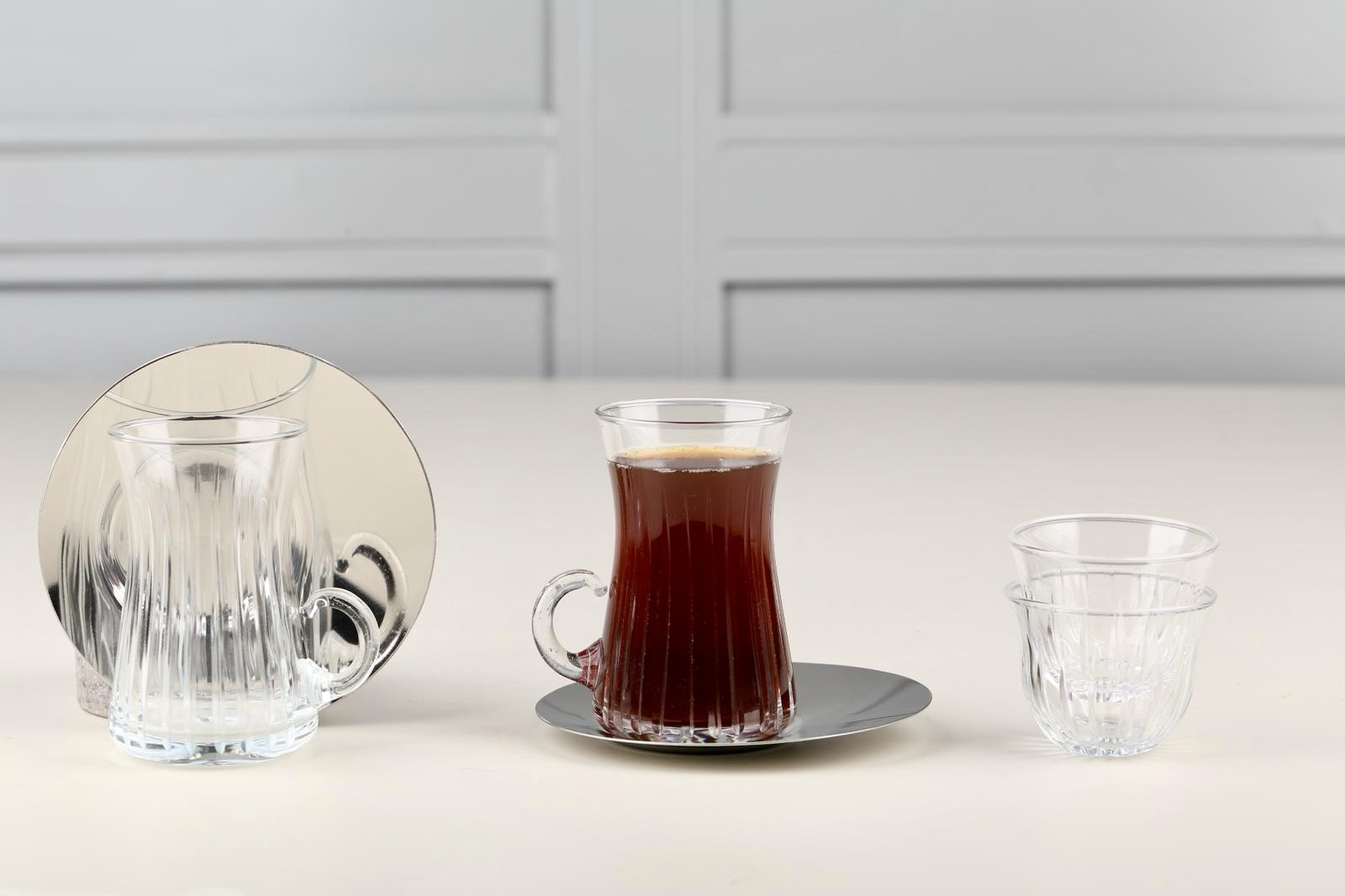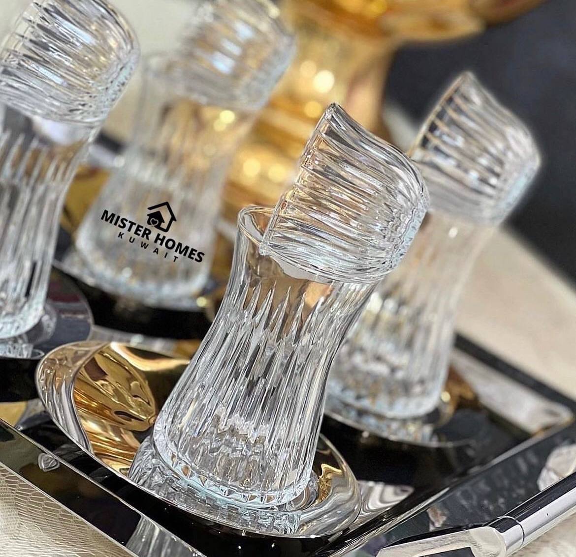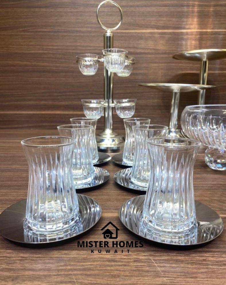 ، طقم 6 استكانات و 6 فناجين مع 6 قواعد استكانات بكتابة رمضان