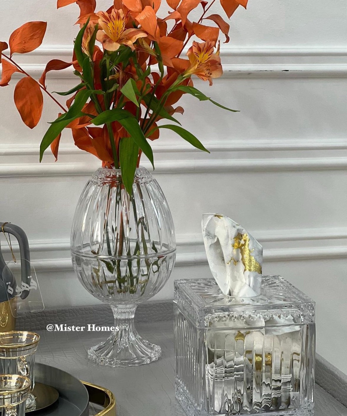 عرض الڤازا و علبة الكلينكس الكرستال ( نقشة الخطوط )
